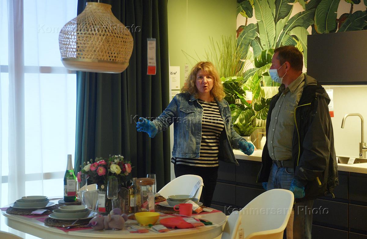 Экономика и бизнес Москва во время режима самоизоляции из-за опасности распространения коронавирусной инфекции COVID-19. Снятие ограничений, введенных в связи с эпидемией коронавируса. Жанровая фотография. Магазин Ikea в Теплом стане.
