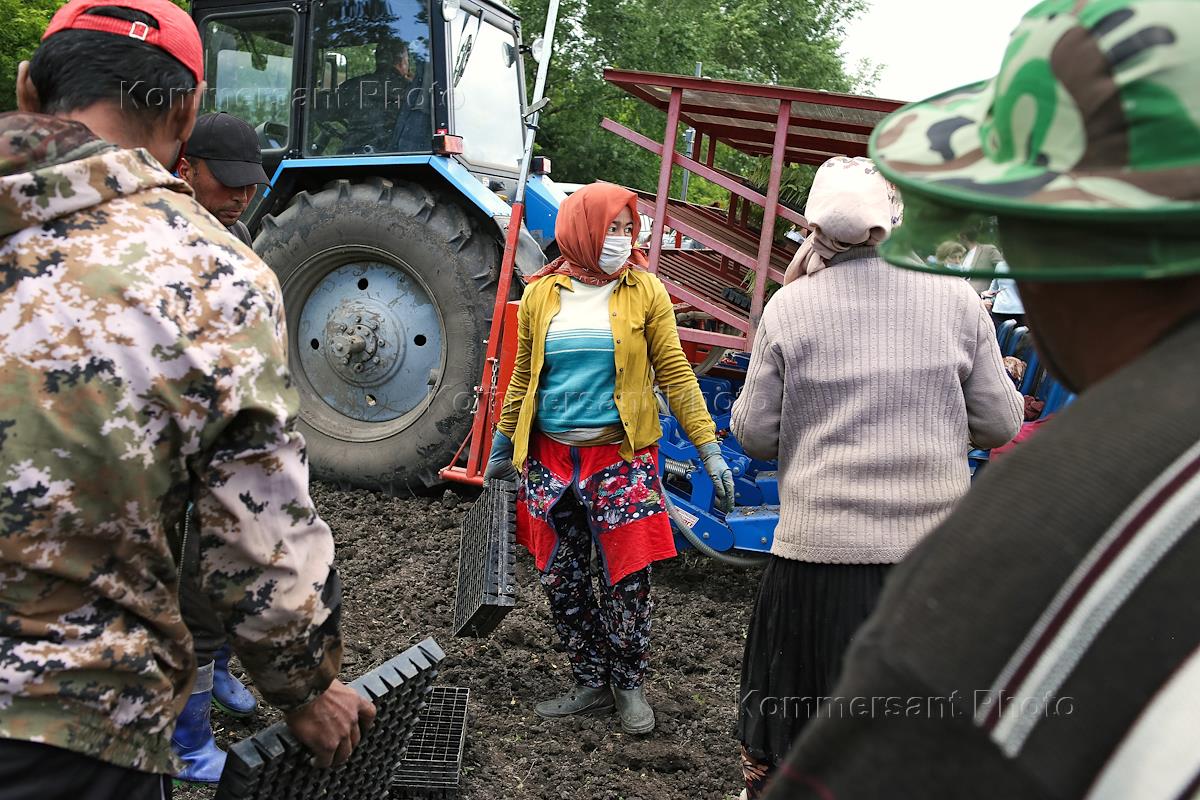 Работа сельскохозяйственного предприятия "Мичуринец" в Новосибирской области. Саженцы капусты.