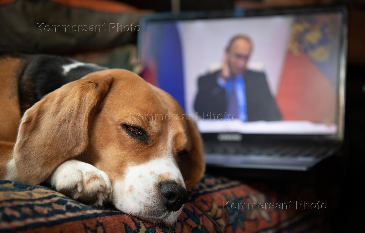 Политика Президент России Владимир Путин в Ново-Огарево во время встречи с представителями общественных организаций, работающих в сфере экологии и зоозащиты, в режиме видеоконференции.