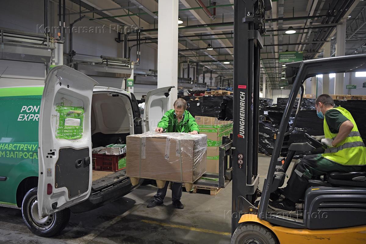 Экономика и бизнес Москва во время режима самоизоляции из-за опасности распространения коронавирусной инфекции COVID-19. Работа службы курьерской доставки PONY EXPRESS.