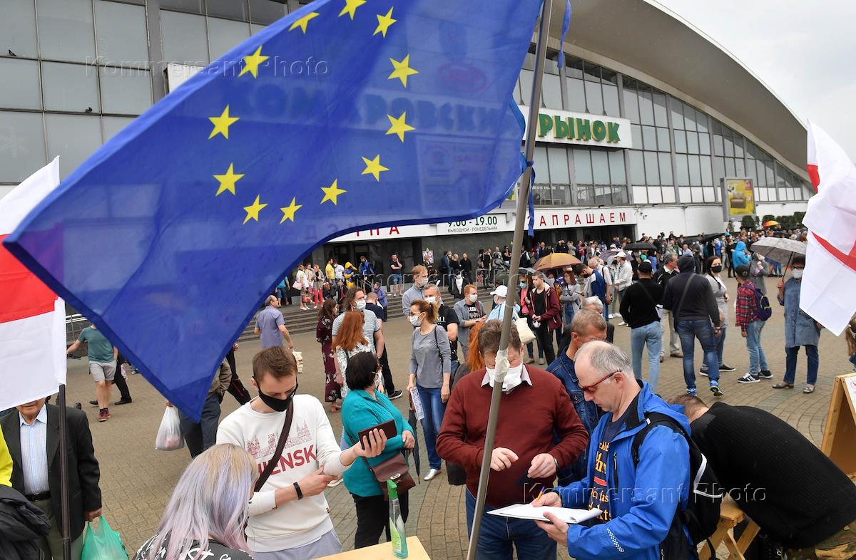 Сбор подписей за кандидатов и протестный митинг против Лукашенко на Комаровском рынке в Минске.