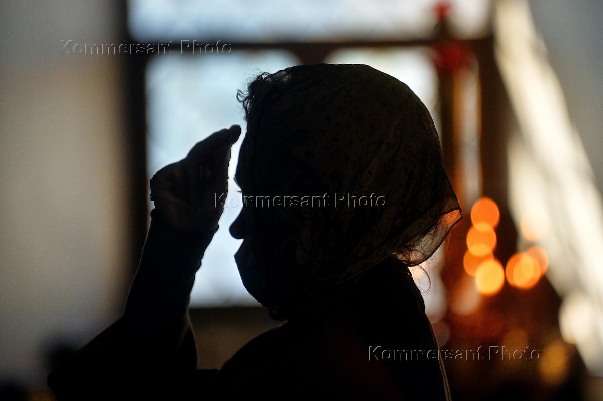 Религия Москва во время режима самоизоляции из-за опасности распространения коронавирусной инфекции COVID-19. С 6 июня храмы Москвы открыты для прихожан. Высоко-Петровский монастырь открытый для прихожан. Жанровая фотография. Богослужения в Сергиевском храме.