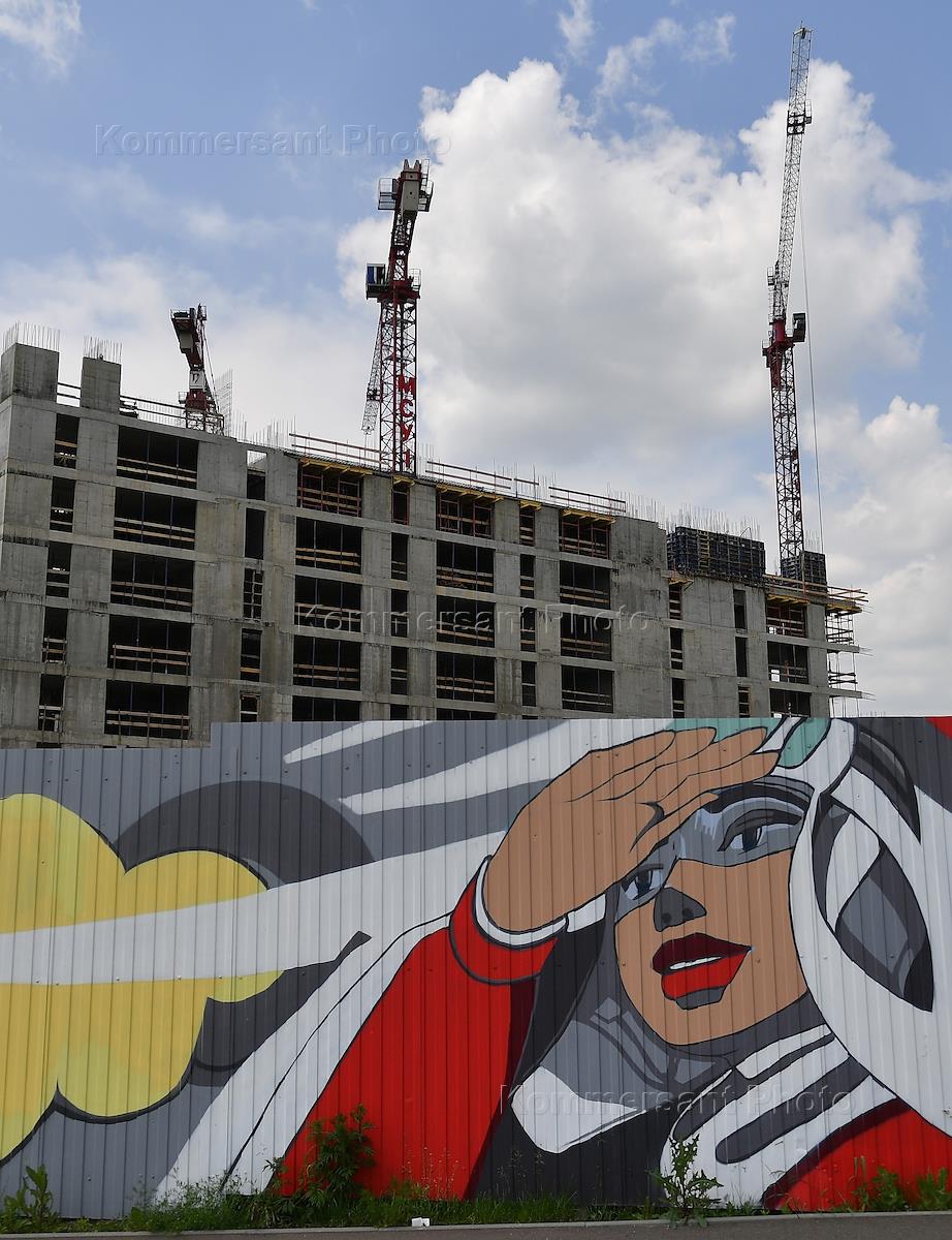 Виды Москвы. Жанровая фотография. Новостройки города. Строительная площадка жилого комплекса в…
