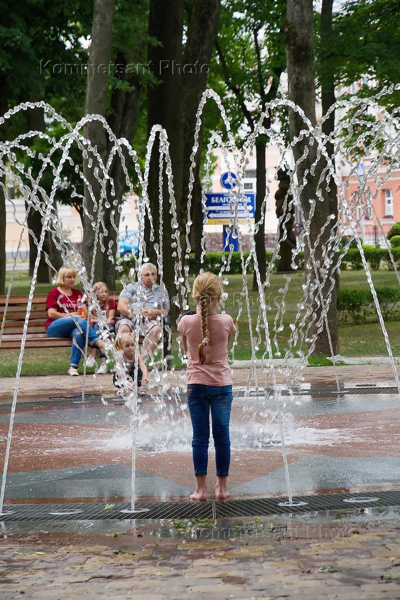 Виды Гомеля. Жанровая фотография. Девочка у фонтана в городском сквере.
