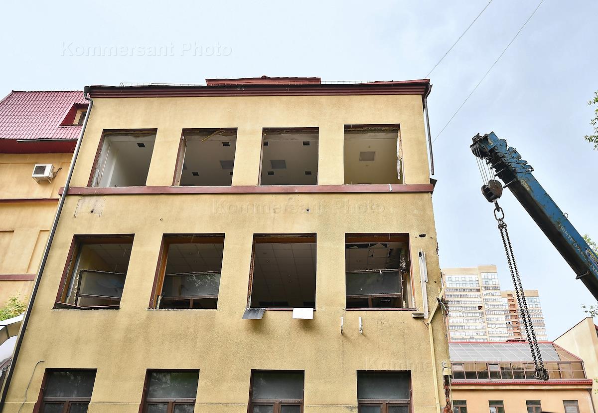 Снос бывшего здания Издательского дома "Коммерсантъ" на улице Врубеля, 4.