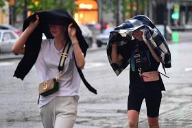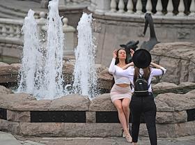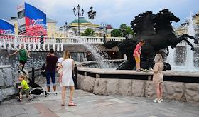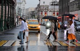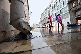 Жанровая фотография. Дождь в Москве. Начало сезона фонтанов.