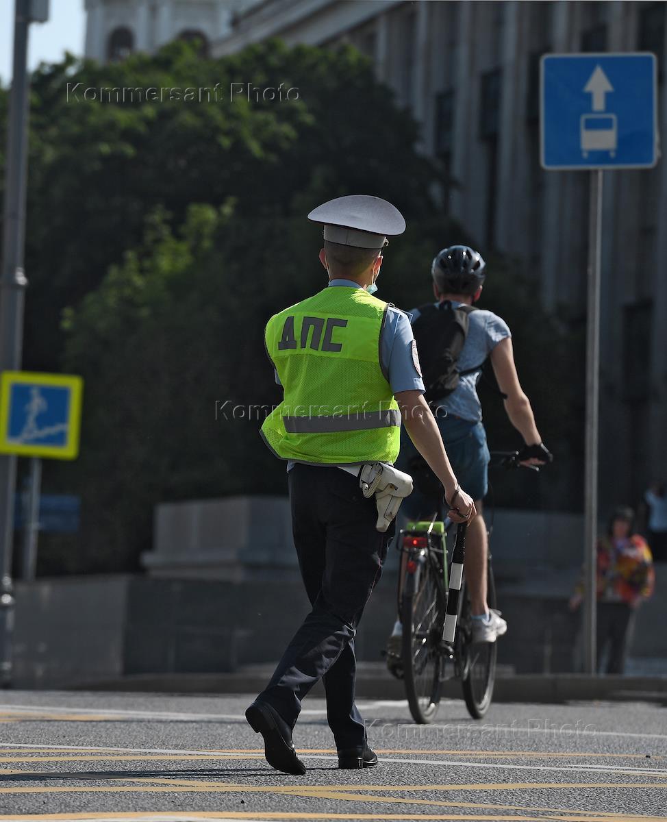 Жанровая фотография. Сотрудник дорожно-патрульной службы (ДПС) на пешеходном переходе.