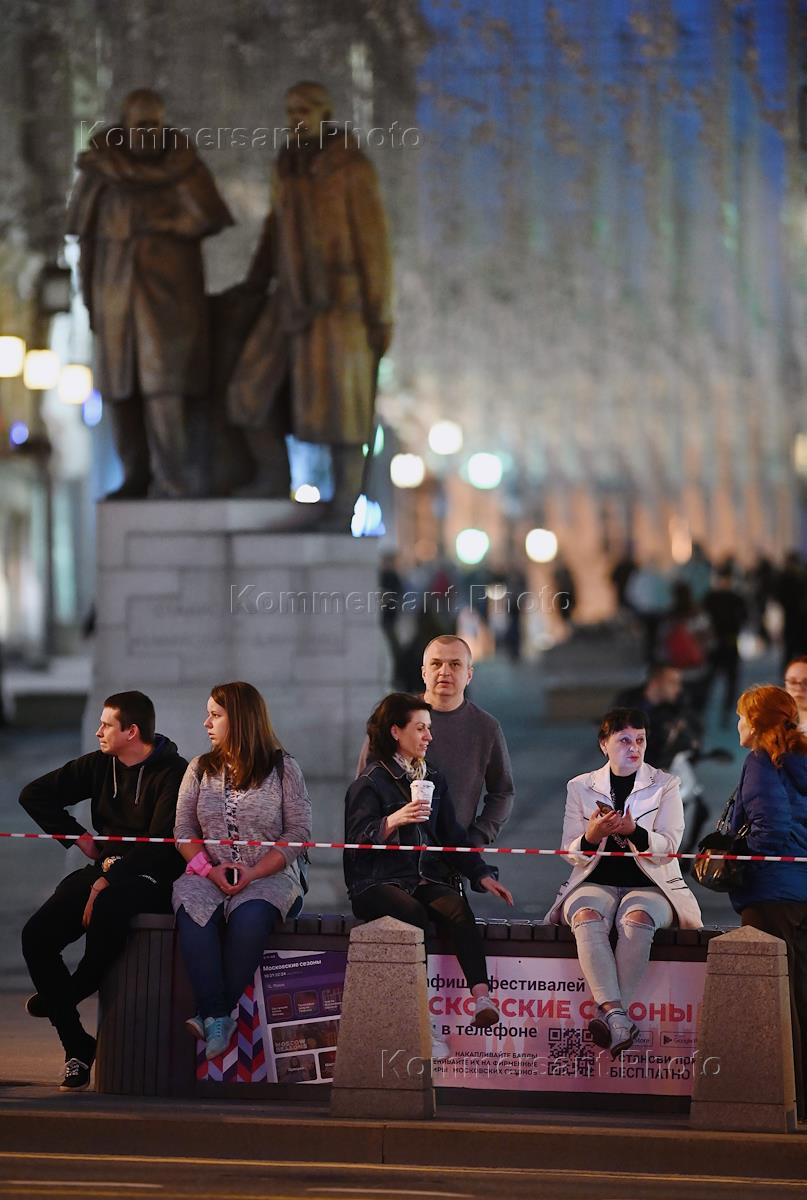 Репетиция военного парада в честь 75-летия Победы в Великой Отечественной войне. Зрители на Тверской…