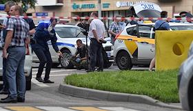 Сотрудники полиции на месте стрельбы на Ленинском проспекте, которую устроил неизвестный мужчина по…