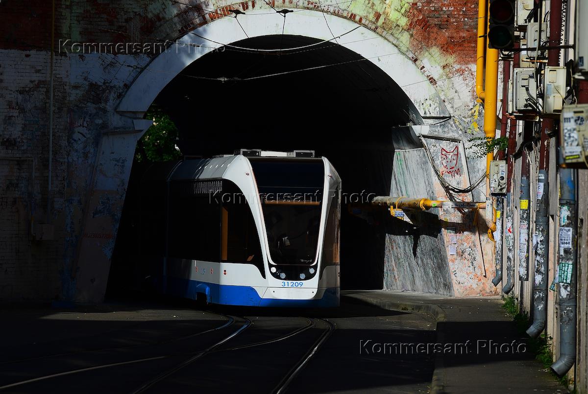 Жанровая фотография. Трамвай в тоннеле на Сыромятническом проезде.