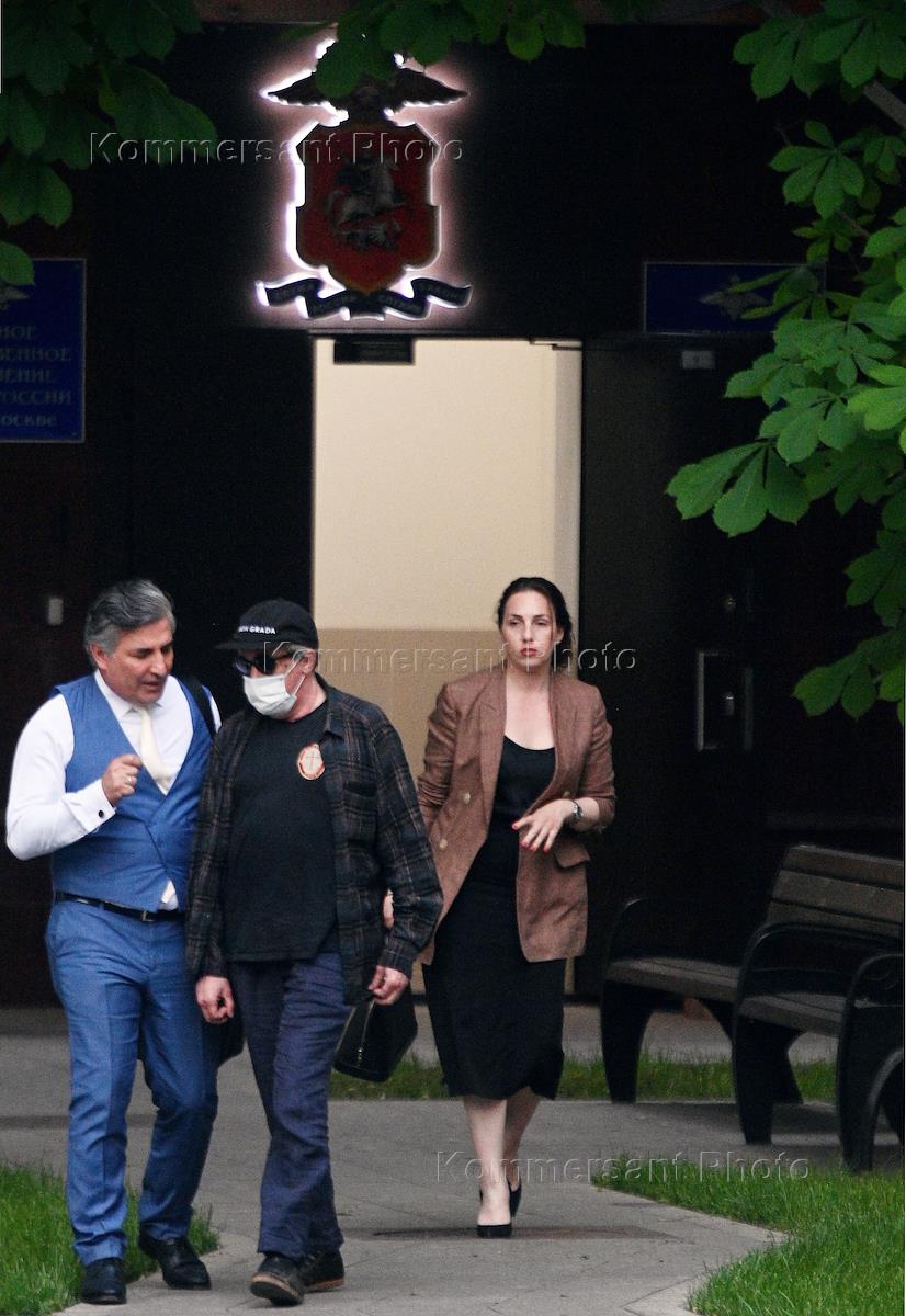 Адвокат Эльман Пашаев (слева) и актер Михаил Ефремов (в центре) после окочания допроса в Главном…