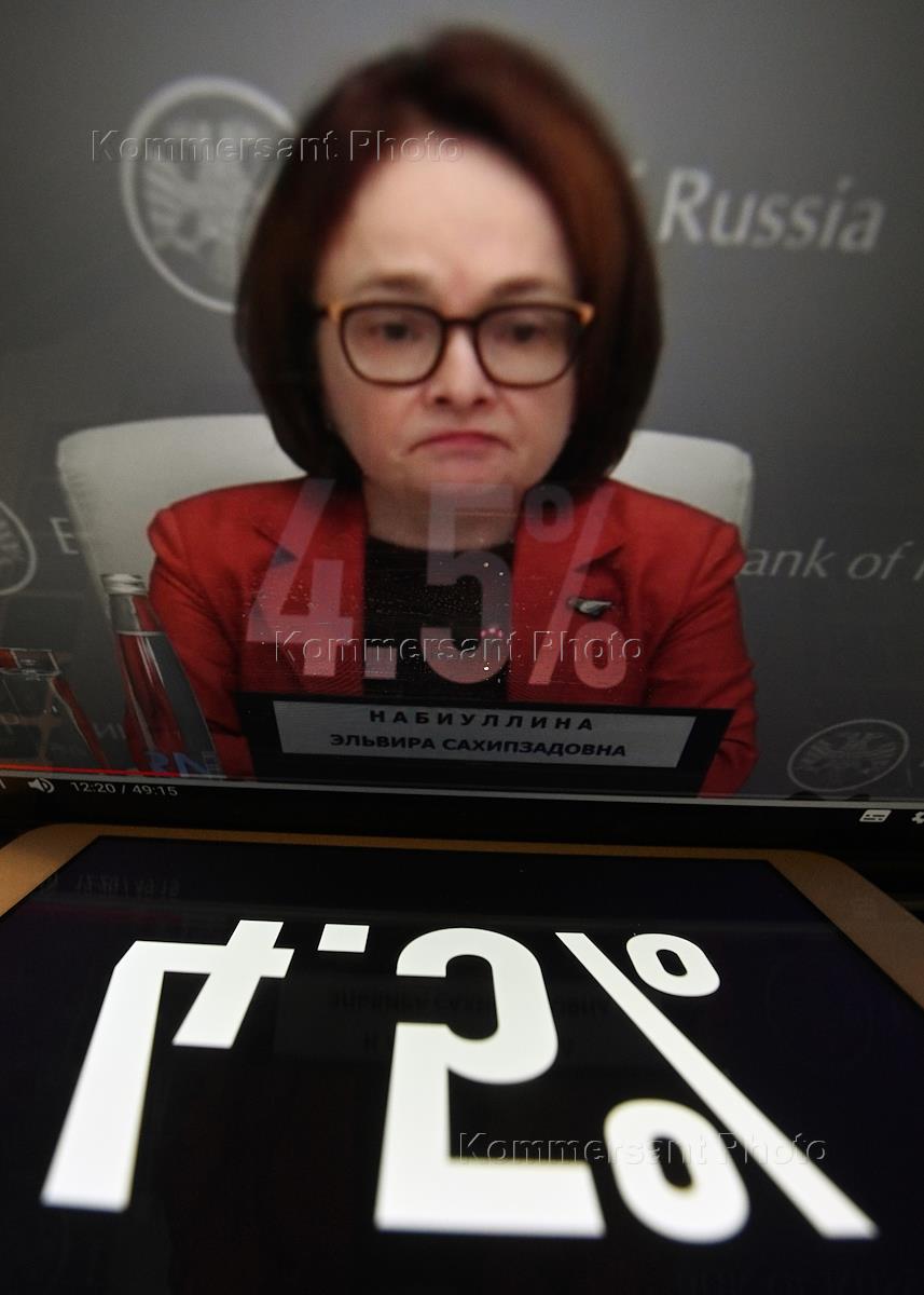 Экономика и бизнес Жанровая фотография. Онлайн-конференция Банка России «Текущая ситуация и стабилизационные меры», в которой приняла участие глава ЦБ РФ Эльвира Набиуллина.