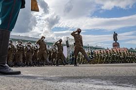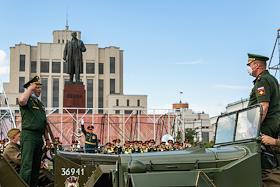 Репетиция парада Победы на площади Свободы в Казани. Проход строевых частей и военной техники.