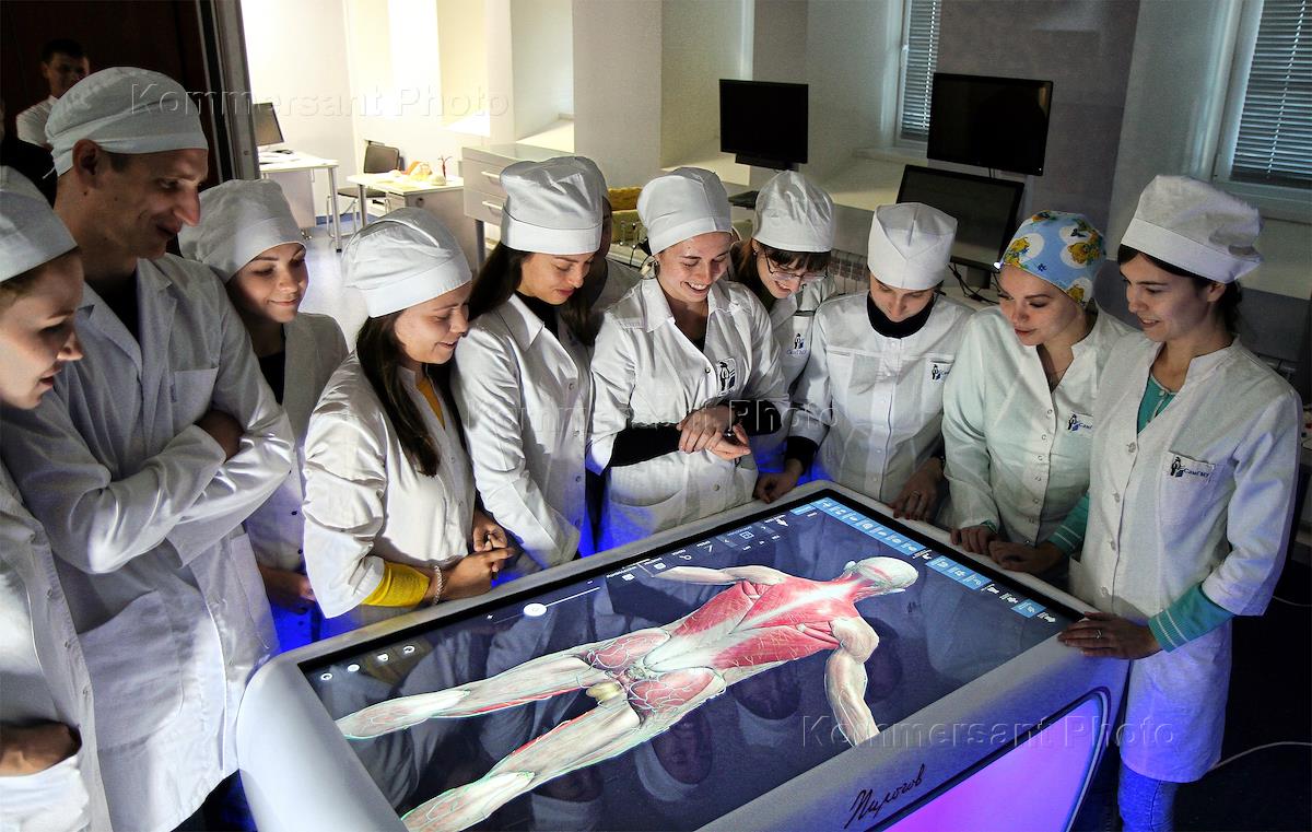 Жанровая фотография. Студенты Самарского медуниверситета изучают анатомию человека при помощи…