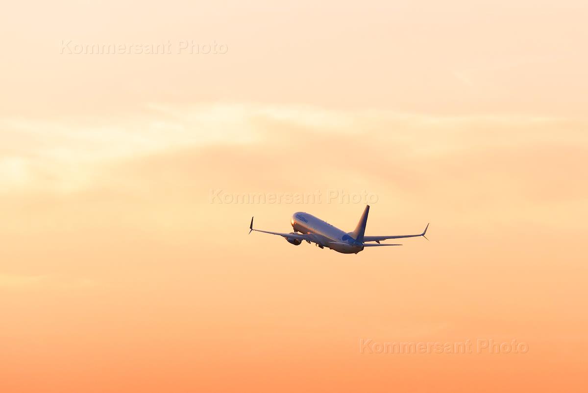 Жанровая фотография. Самолет Boeing 737-800 авиакомпании "Победа" во время первого рейса в…