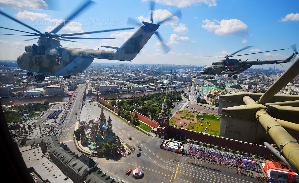 Военный парад, посвященный 75-й годовщине Победы в Великой Отечественной войне. Съемка из самолета.