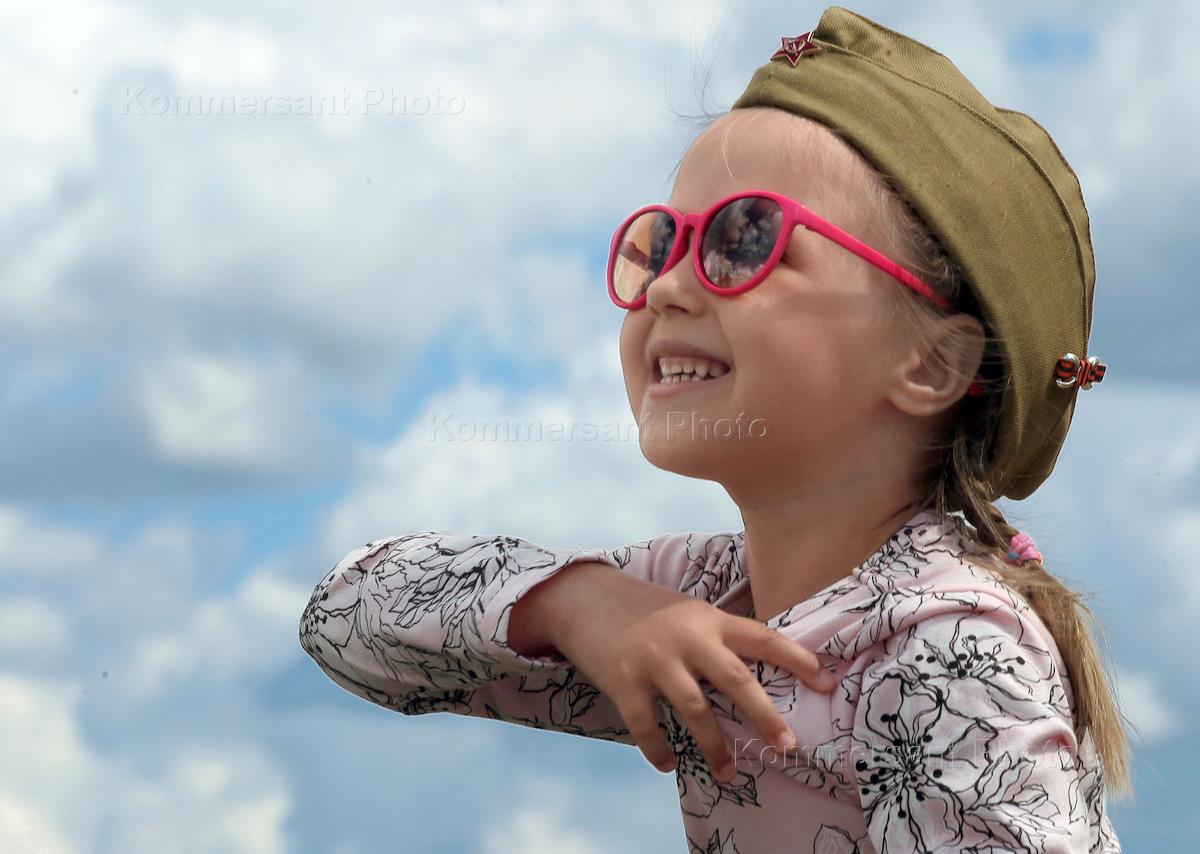 Военный парад, посвященный 75-летию Победы в Великой Отечественной войне. Девочка в военной пилотке…