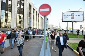 Акции протеста на проспекте академика Сахарова. Сотрудники полиции во время акции.