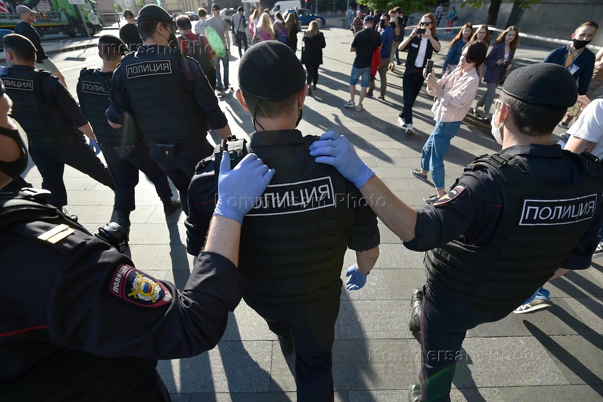 Акции протеста на проспекте академика Сахарова. Сотрудники полиции во время задержания участников…