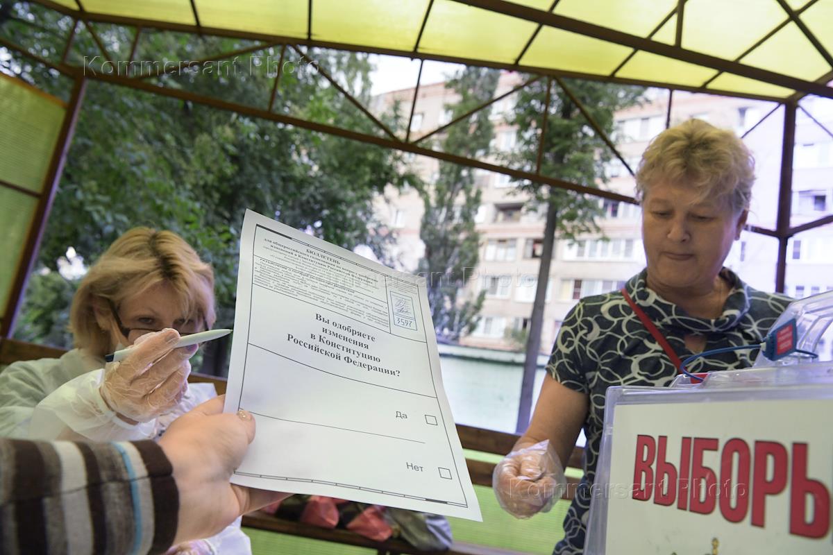 Общероссийское голосование по поправкам к Конституции России. Члены избирательной комиссии во время…