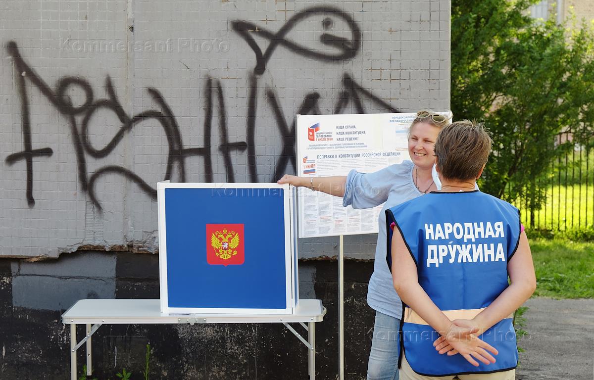 Общероссийское голосование по поправке к Конституции России. День первый. Работа участков во дворах жилых домов.