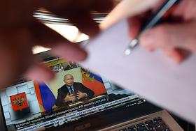 Жанровая фотография. Трансляция встречи президента России Владимира Путина с членами Общественной…