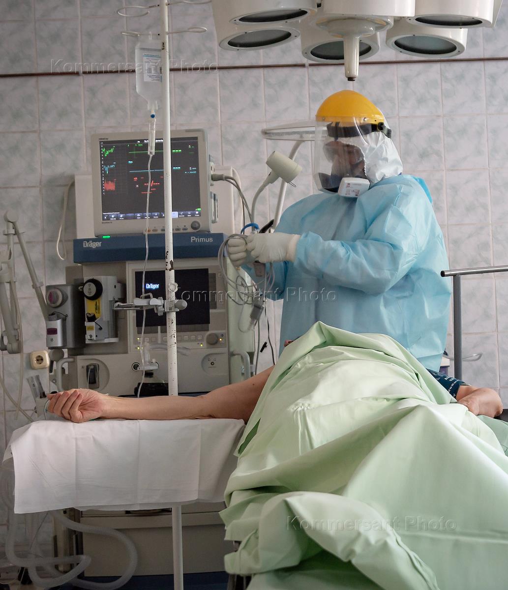 Сотрудники СПБ ГБУЗ "Городская Мариинская больница" во время работы в отделении в период пандемии…
