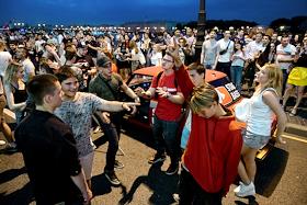 Праздник выпускников "Алые Паруса". Молодые люди во время импровизированной дискотеки на Английской…