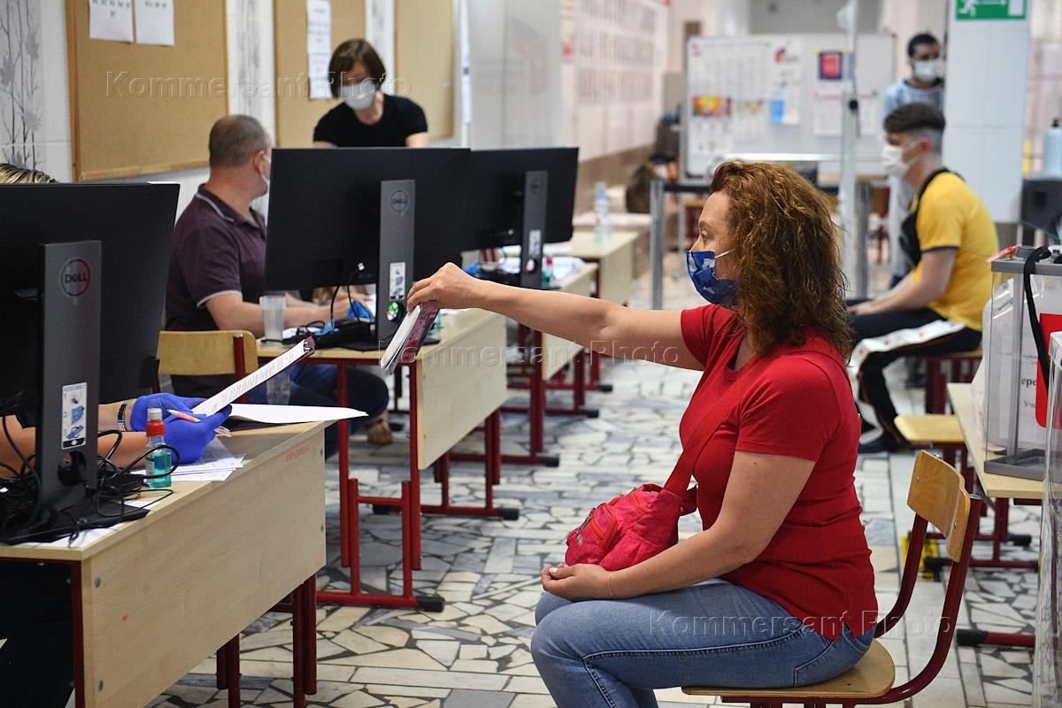 Общероссийское голосование по поправкам к Конституции России. Работа участка в школе №2070 в поселке Коммунарка Новой Москвы.