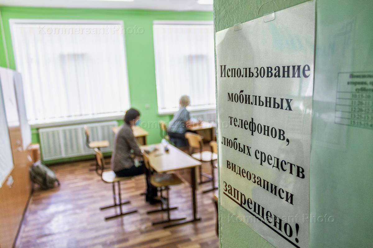 Проведение пробного Единого государственного экзамена (ЕГЭ) в школе №87. Учителя во время проведения…