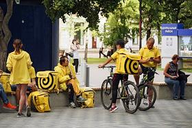 Жанровая фотография. Курьеры службы доставки компании "Яндекс. Еда".