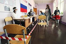 Общероссийское голосование по поправкам к Конституции России. Люди на избирательном участке.