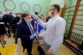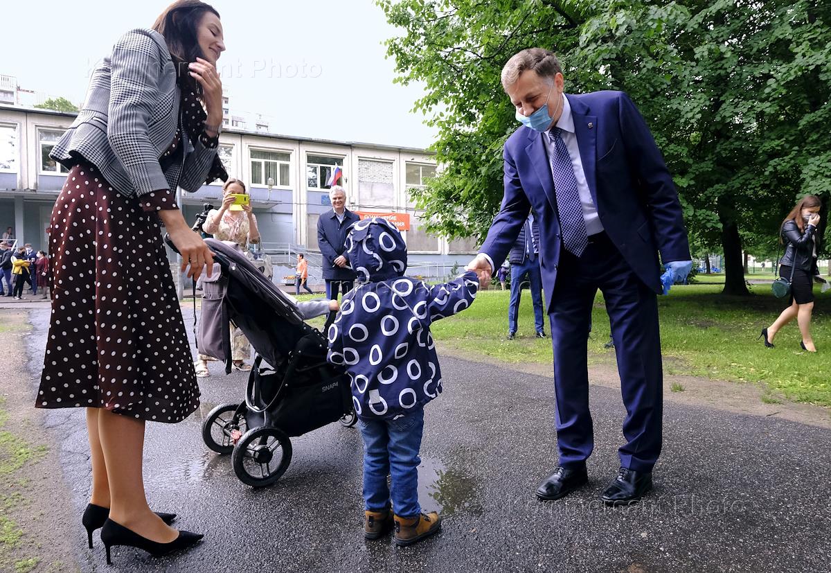 Политика Общероссийское голосование по поправкам к Конституции России. Последний день голосования. Председатель Законодательного собрания Санкт-Петербурга Вячеслав Макаров на избирательном участке № 483 (ТИК №11) в школе №172 на улице Демьяна Бедного.