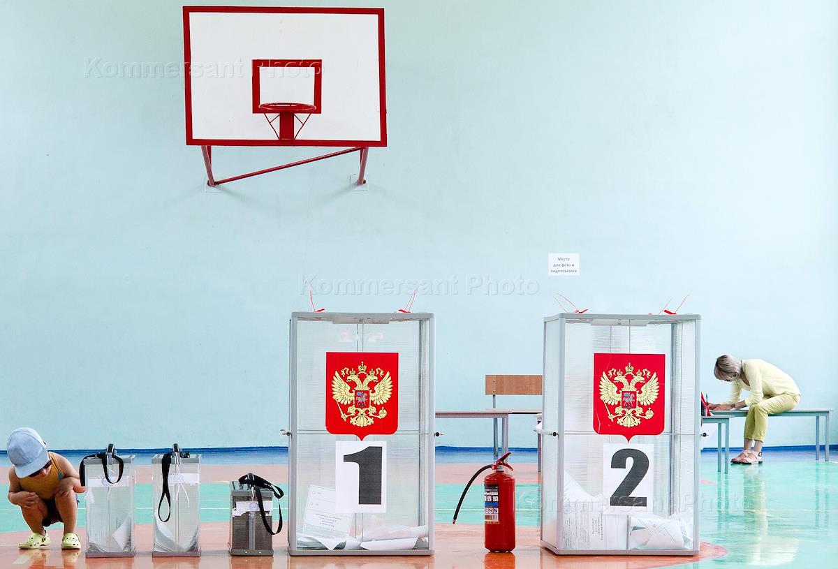 Общероссийское голосование по поправкам к Конституции России. Люди во время голосования на…