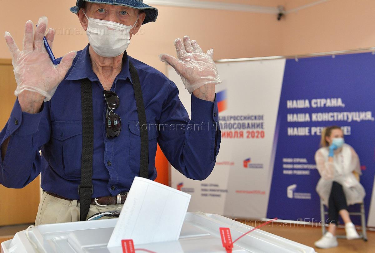 Общероссийское голосование по поправкам к Конституции России. Люди во время голосования на…