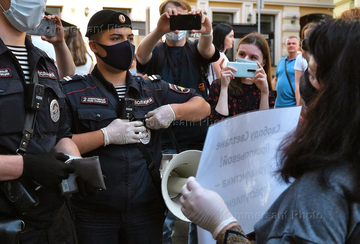 Одиночные пикеты у здания представительства Псковской области в Москве.