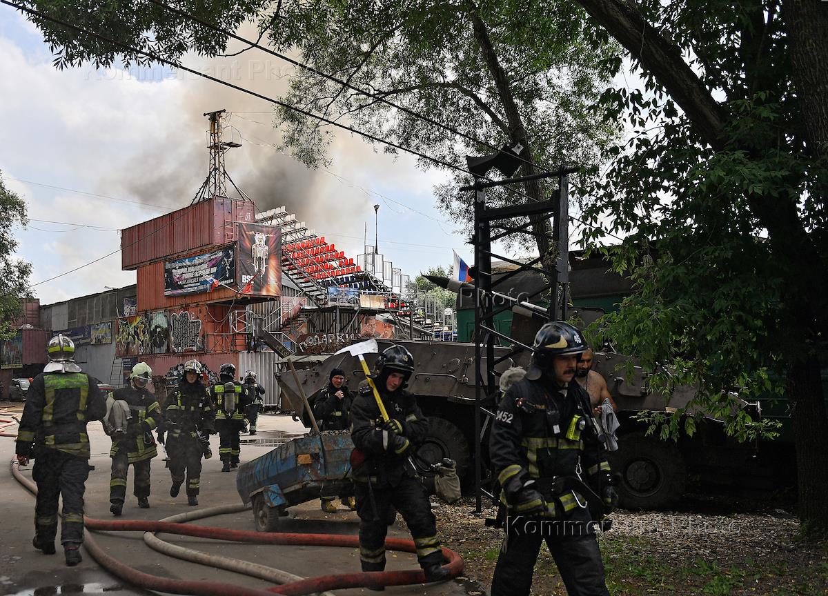 Пожар на складе базы каскадеров "Парк киноприключений". Сотрудники противопожарной службы МЧС России…