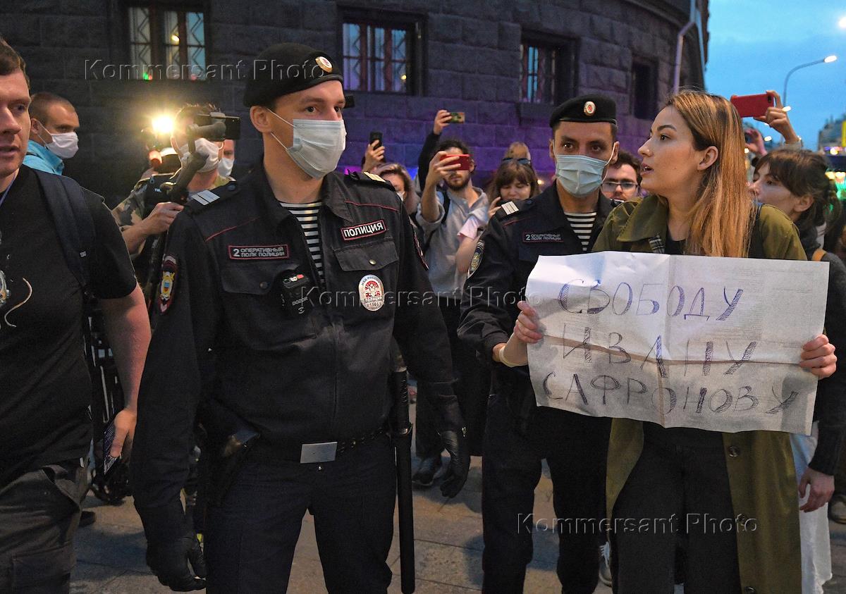 Общество Пикеты у здания ФСБ России в поддержку советника гендиректора "Роскосмоса", бывшего журналиста Издательского дома "Коммерсантъ" Ивана Сафронова, задержанного по подозрению в госизмене.