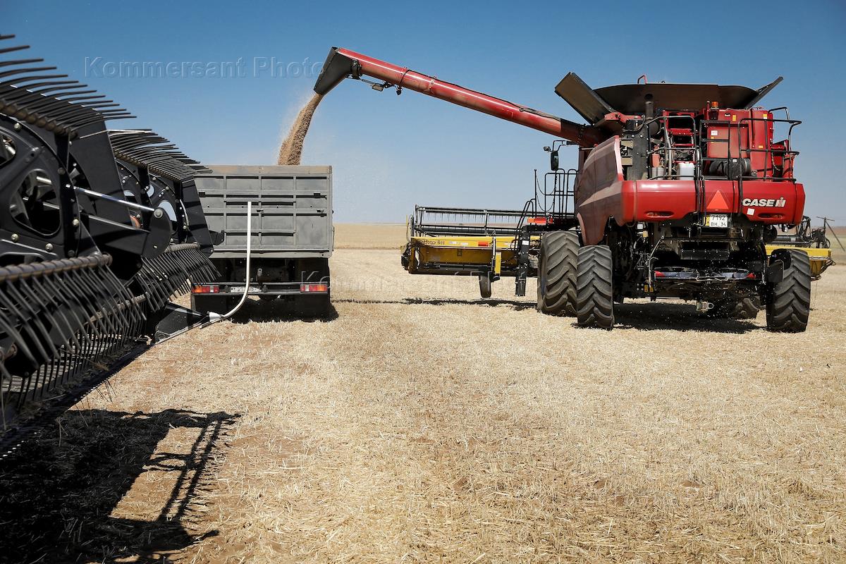 Уборка урожая озимой пшеницы. Разгрузка зерна.