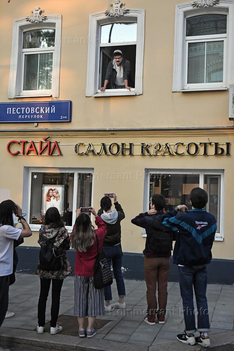 Ситуация у редакции "МБХ медиа". Главный редактор "МБХ медиа" Вероника Куцылло в окне здания.