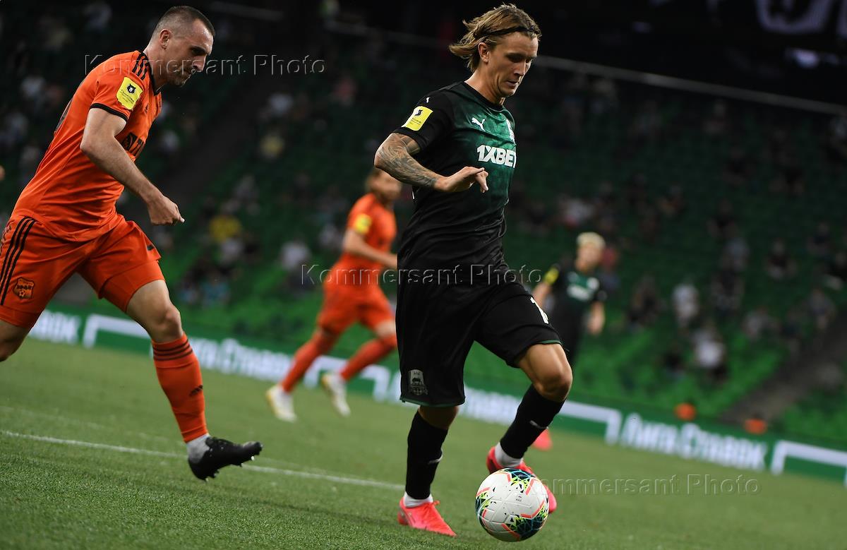 Спорт Тинькофф Российская Премьер-Лига (РПЛ). Чемпионат России по футболу 2019/2020. 28-й тур. Матч между командами "Краснодар" (Краснодар) и "Урал" (Екатеринбург) на стадионе футбольного клуба (ФК) "Краснодар".