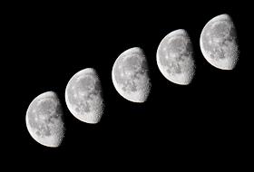 Жанровая фотография. Множественное изображение луны в фазе убывания.