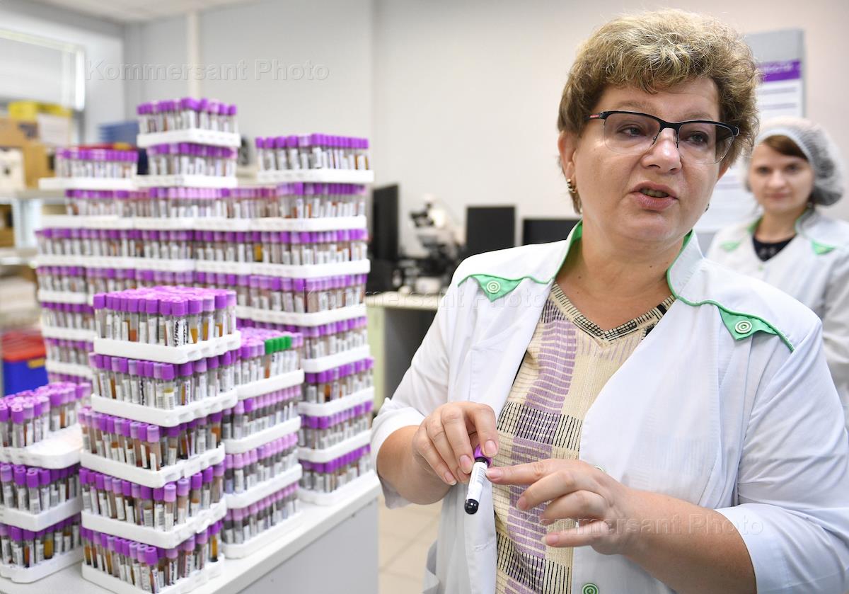 Медицинская лаборатория "Гемотест". Сотрудники лаборатории во время проведения анализов.