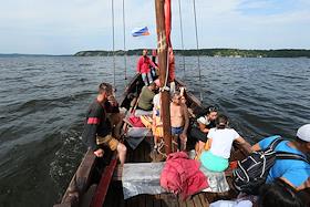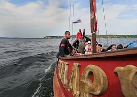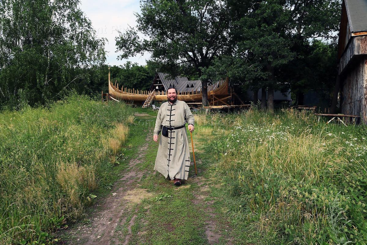 Духовно-культурной кремль "Богатырская Слобода" на Самарской Луке. Ладья на реке Усе.