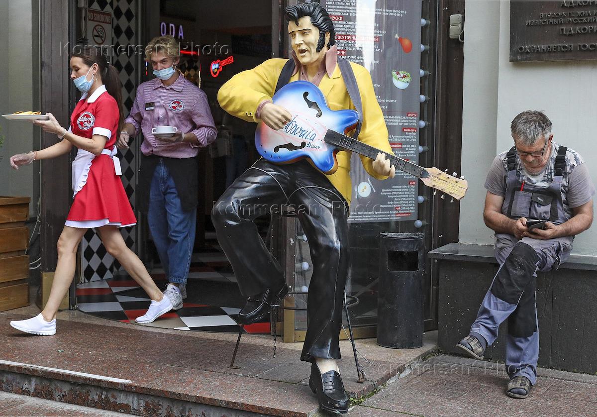 Жанровая фотография. Фигура Элвиса Пресли перед входом в ресторан California Diner.