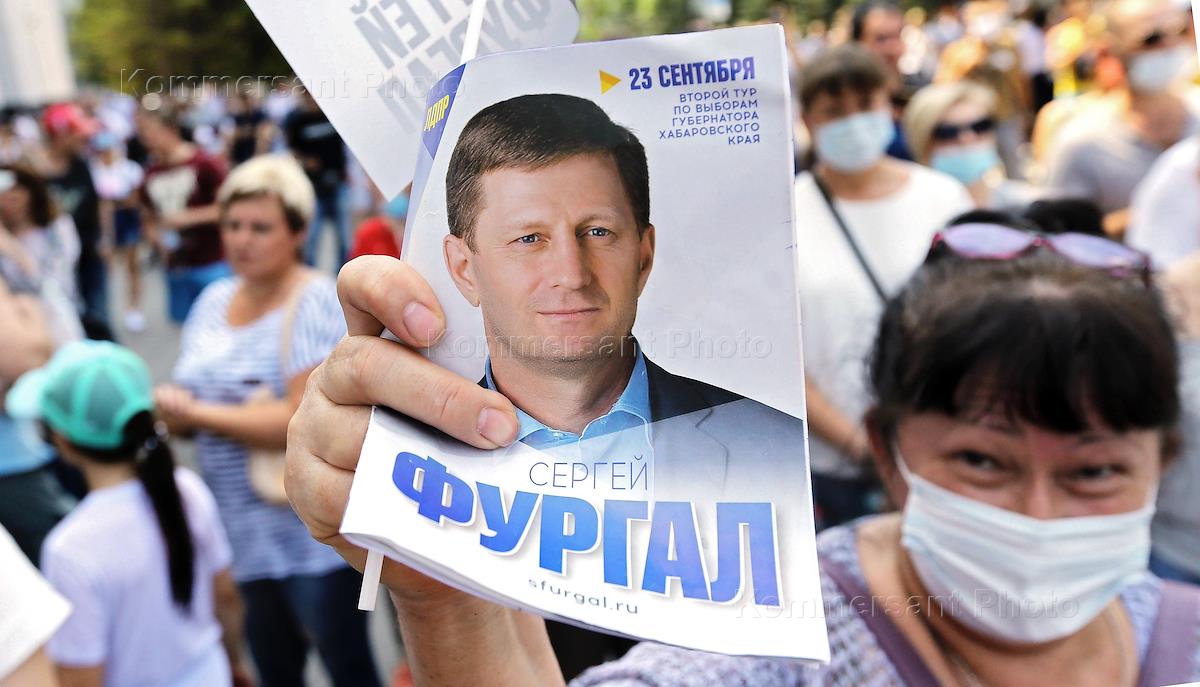 Акция в поддержку губернатора Хабаровского края Сергея Фургала, который был задержан по делу об организации убийств и попытки убийства.