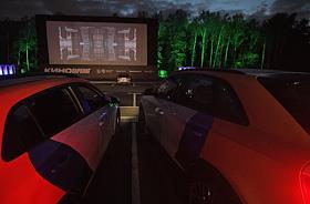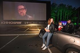 Первый показ фильма в автомобильном кинотеатре под открытым небом "Кинопаркинг" у станции метро…