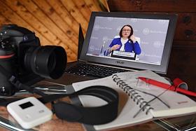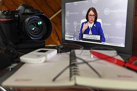Жанровая фотография. Онлайн-пресс конференция председателя Центрального Банка России Эльвиры Набиуллиной о денежно-кредитной политике и обновленному прогнозу Банка России.