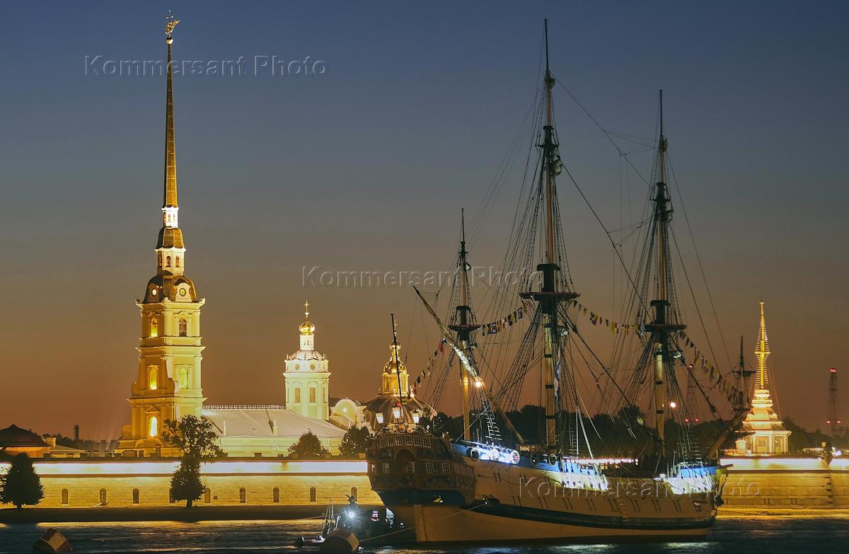 Празднование Дня Военно-Морского Флота (ВМФ). Парусный корабль в акватории реки Невы.