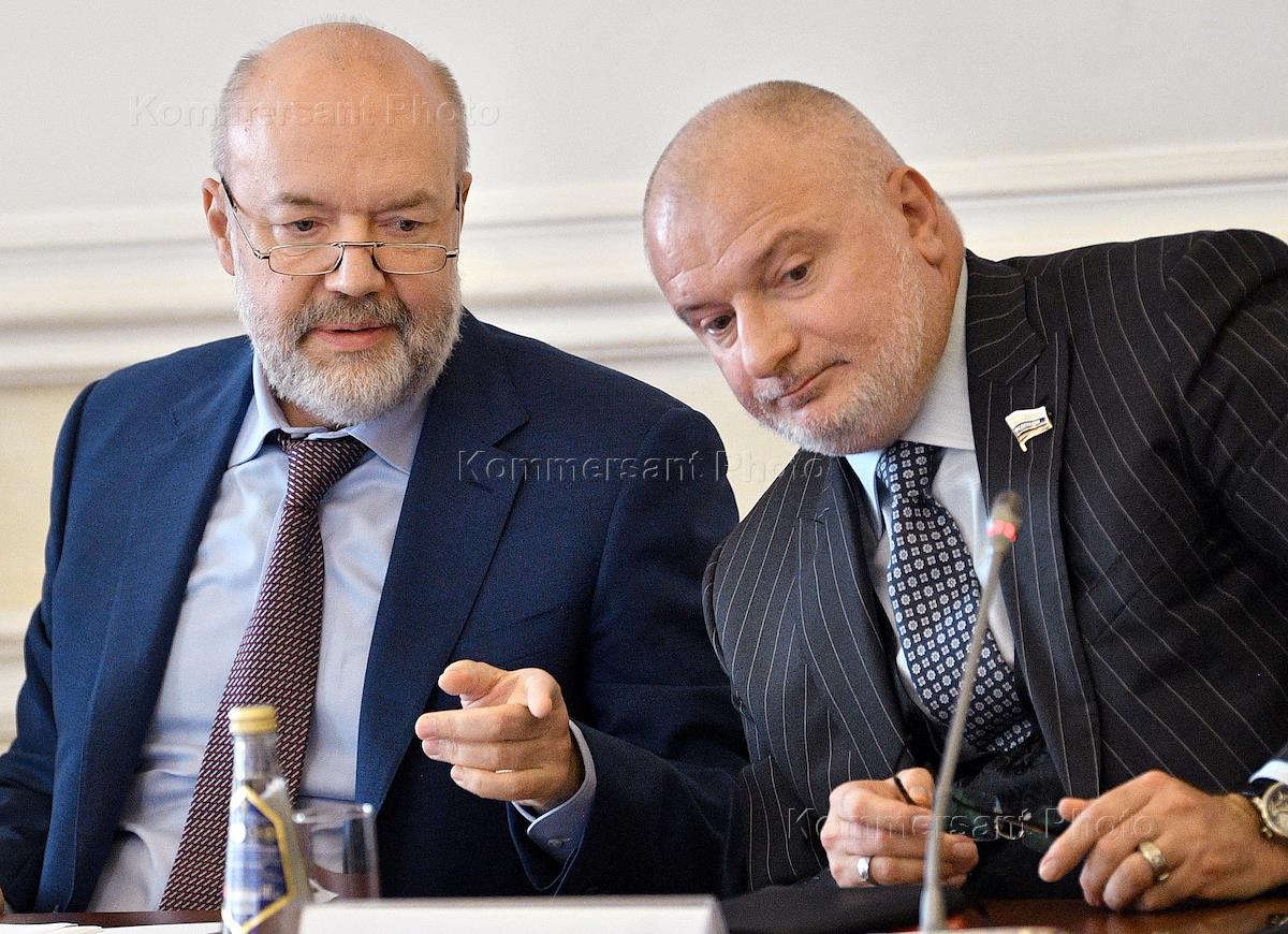 Заседание Рабочей группы по подготовке поправок к Конституции в Общественной палате России. Слева…